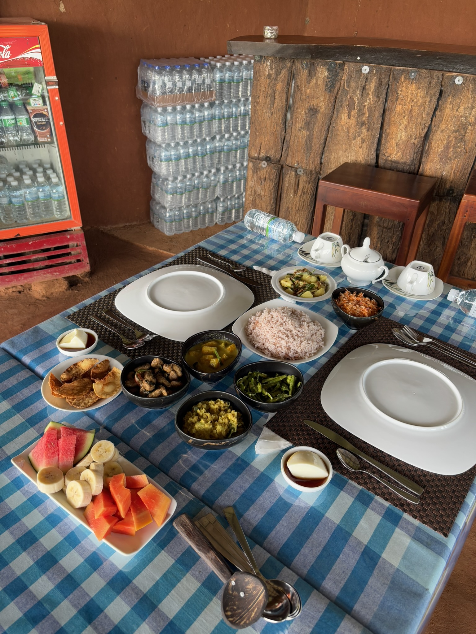 După safari, ne-am întors la cazare, unde familia ne-a pregătit o masă tradițională sri-lankeză – una dintre cele mai bune mese din excursie.