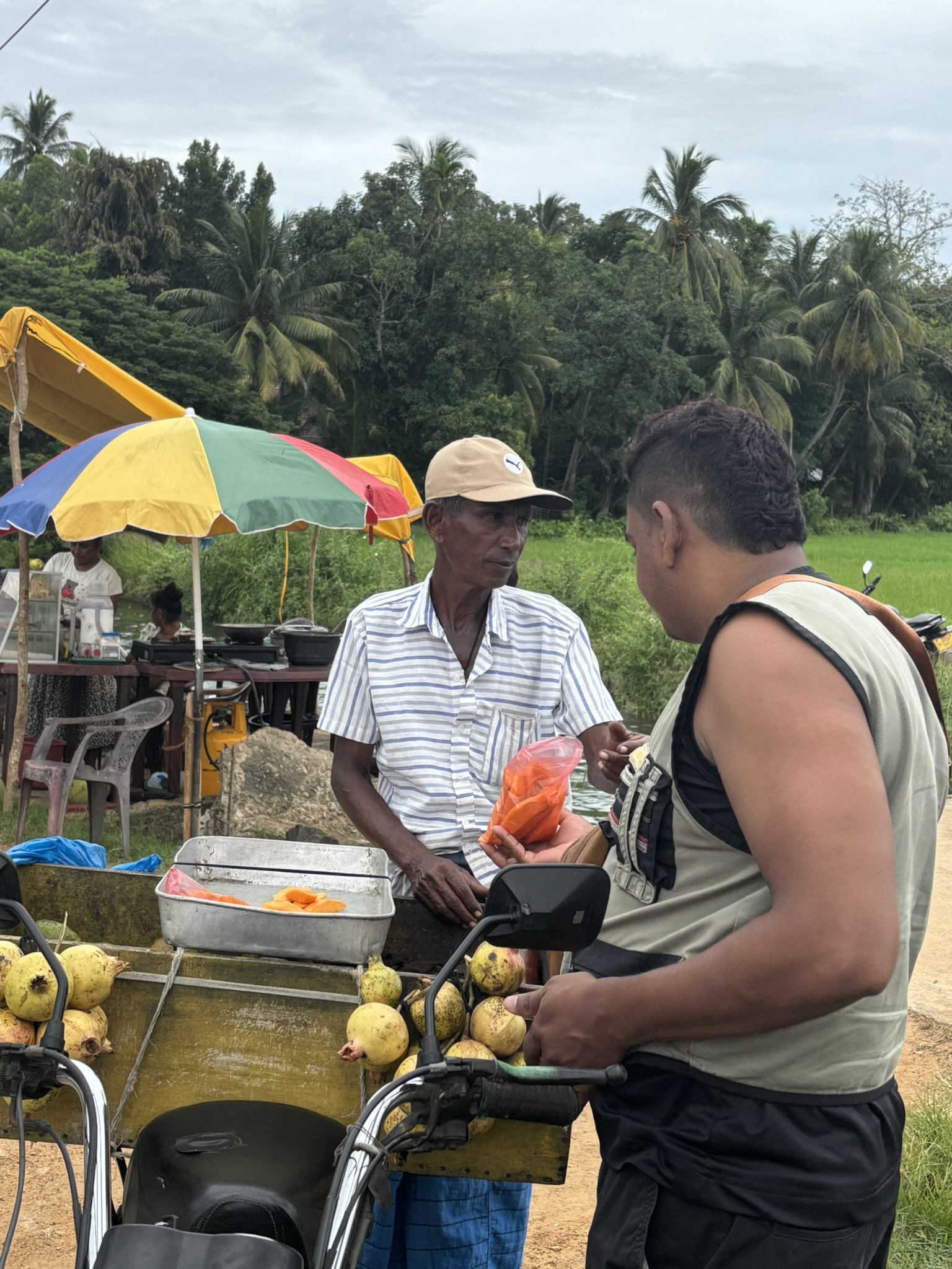 După ce ne-am cazat, gazdele ne-au invitat la o plimbare prin orașul Tissamaharama. Prima oprire a fost la lacul Tissa, unde am observat Fruit Bats, niște lilieci de dimensiuni impresionante, și am aflat povești despre crocodilii care ies adesea din lac pe timpul nopții.