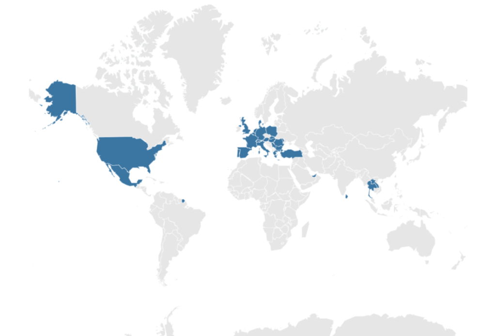 - Asia(6): Thailanda, Laos, Singapore, Emiratele Arabe Unite, Sri Lanka, Maldive.